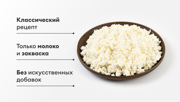 Делаем творог по особой рецептуре, сохраняя историческую традицию изготовления. Короткий натуральный состав: живая закваска и идеальный баланс цельного и обезжиренного молока