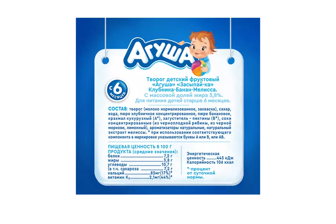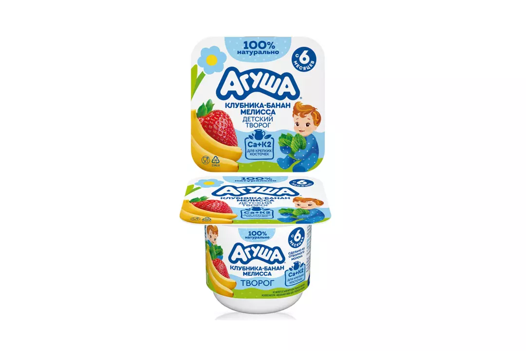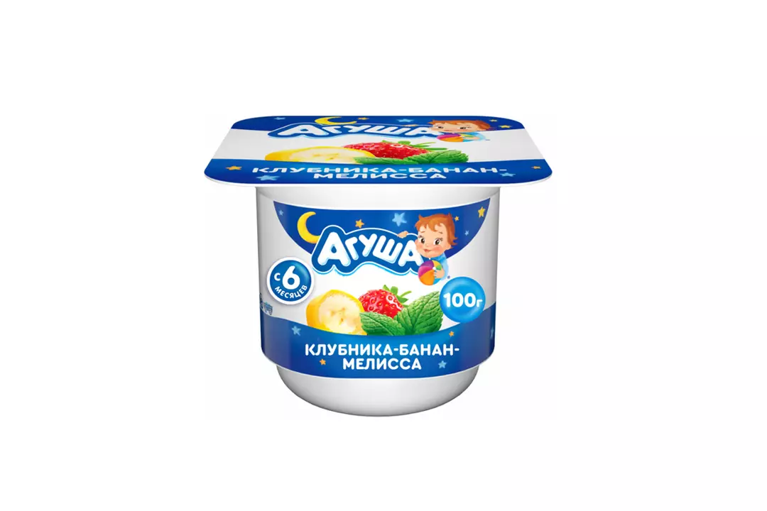 Творог детский Агуша Клубника-банан-мелисса с 6 месяцев 100 г / Супермаркет