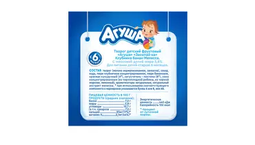 Детский творог Агуша разработан как первый кисломолочный прикорм с 6 месяцев; оптимальным считается введение творога после овощей, безмолочных каш, фруктов. Творожок Агуша - это ценный источник полноценного молочного белка, легкоусвояемого кальция и витамина К2, которые так нужны, чтобы у малыша сформировались крепкие зубы и косточки. Помимо творога Агуша предлагает кефир, ряженку, йогурт – это тоже важная часть рациона подрастающего малыша. • 100% натурально • Без добавления консервантов, сухого молока, искусственных ароматизаторов • К2+Ca для крепких косточек и здорового роста Страна-производитель:Россия Возраст потребления: с 6 месяцев
