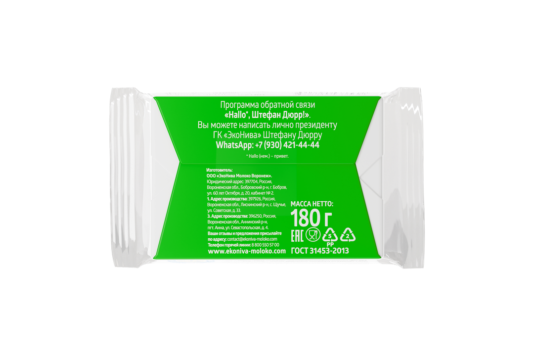 Творог «ЭкоНива» 9% имеет простой и полностью натуральный состав — он изготовлен из молока высшего сорта при помощи заквасочной культуры. Продукт обладает чистым выраженным кисломолочным вкусом, привлекательным ароматом и мягкой однородной консистенцией. В домашней кулинарии творог «ЭкоНива» станет не только вкусной и нежной начинкой для вареников, булочек, пирогов, но и идеальной основой для сырников, запеканок, придавая им выраженный творожный вкус. Также продукт отлично подходит для завтраков, полезных перекусов и легких закусок: он удачно сочетается со сметаной и йогуртом, фруктами и ягодами, орехами и мёдом, а еще — со свежей зеленью. Перед употреблением творог можно пропустить через сито или мясорубку, благодаря чему текстура творожного зерна станет более воздушной и однородной. Страна-производитель Россия