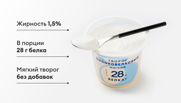 В этом твороге содержание белка выше, чем в других вариантах мягкого творога: 28 г на порцию 250 г