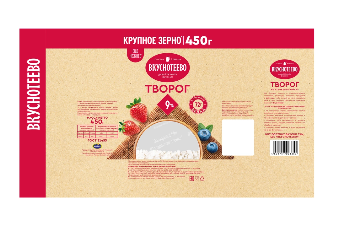Творог Вкуснотеево 9% 450 г / Супермаркет