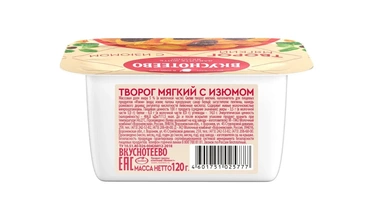 Творог Вкуснотеево мягкий с изюмом 5% 120 г / Супермаркет