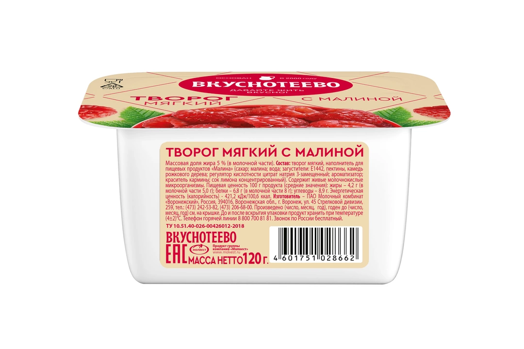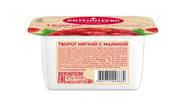 Творог Вкуснотеево мягкий с малиной 5% 120 г / Супермаркет