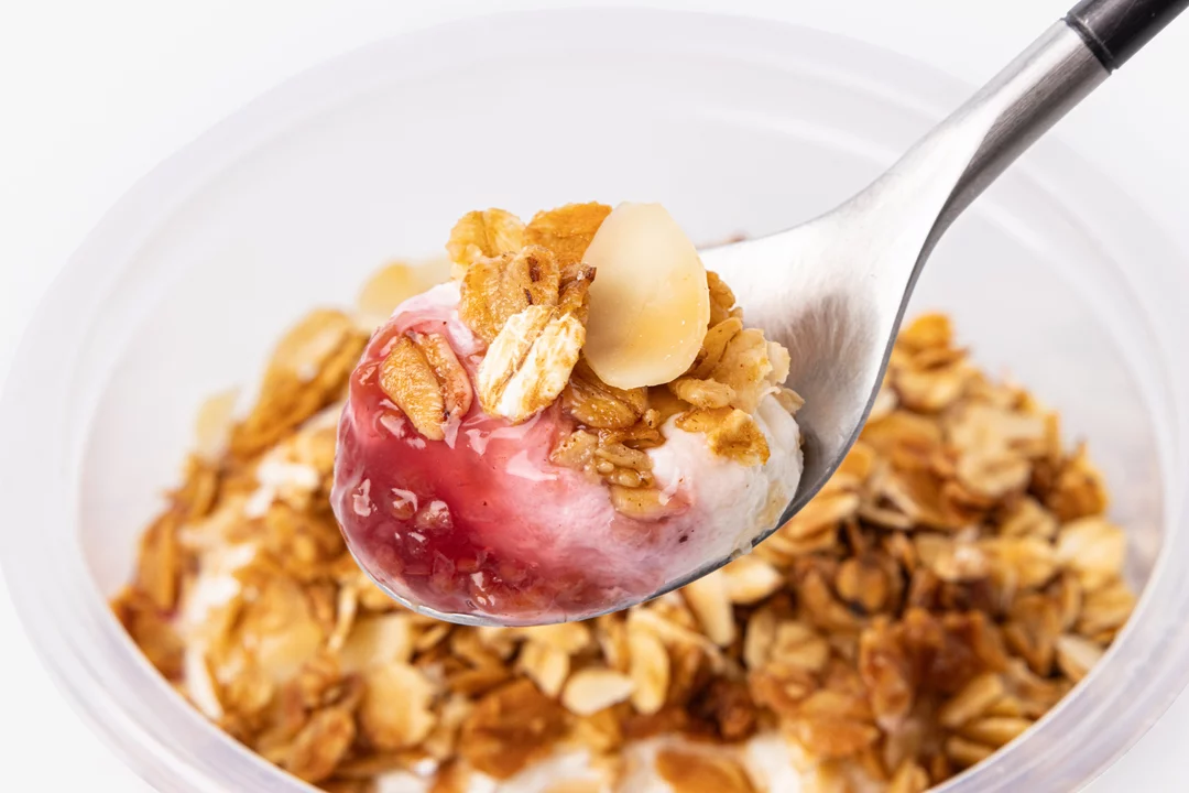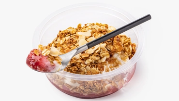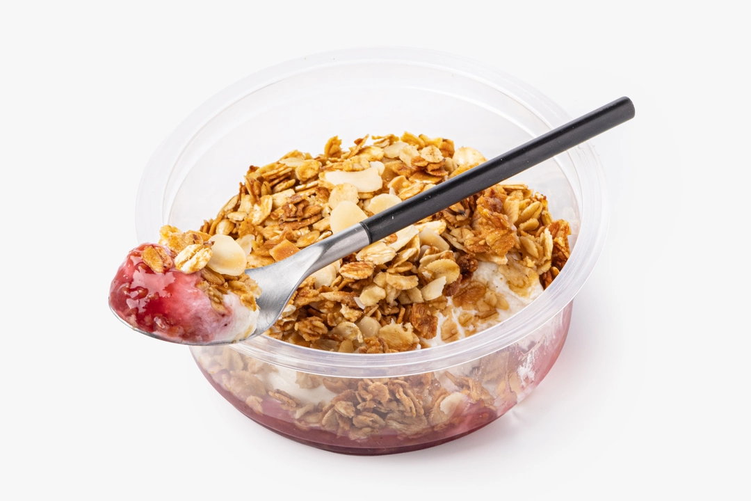 Творожный боул с малиновым наполнителем и гранолой с миндальными лепестками