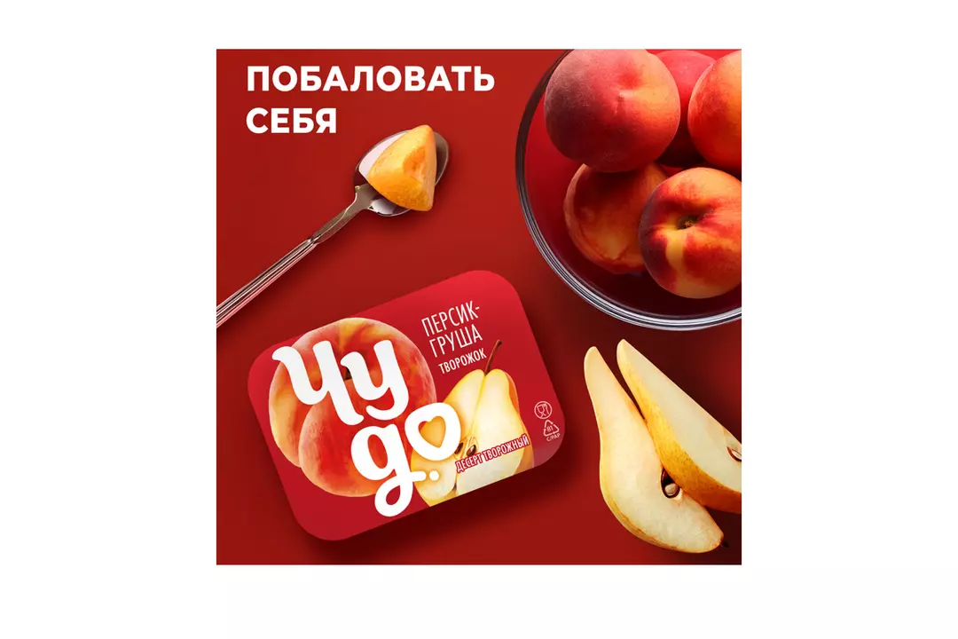 Творожок Чудо Груша-Персик 100 г / Супермаркет