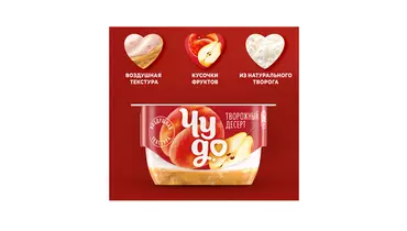 Двухслойный творожок Чудо- это уникальная нежная текстура воздушного творожка + джем с кусочками фруктов ●Яркий вкус груши, персика и воздушного творожка ●Сочетание двух слоев, нижний - джем из груши и персика, верхний - нежный творожок ●Отлично подходит для перекуса или завтрака ●Наслаждайтесь сладкими моментами Страна производитель-Россия