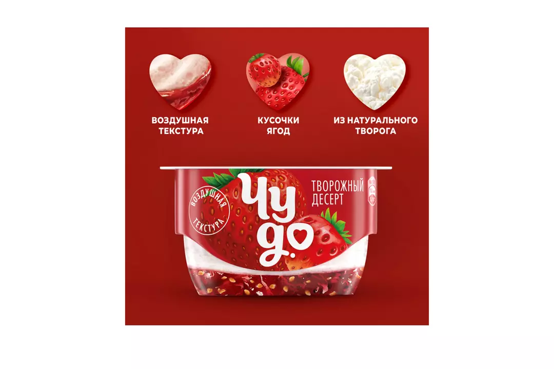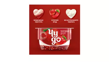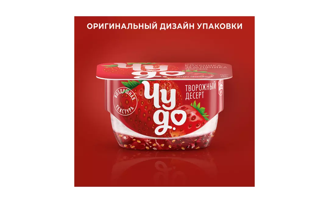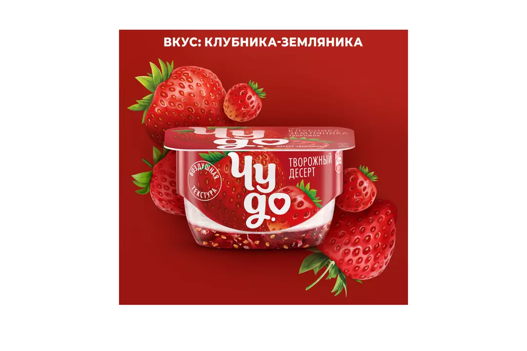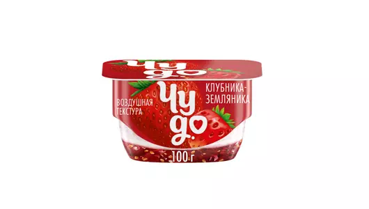 Двухслойный творожок Чудо- это уникальная нежная текстура воздушного творожка + джем с кусочками ягод ●Яркий вкус клубники, земляники и воздушного творожка ●Сочетание двух слоев, нижний - клубничный джем с нотками земляники, верхний - нежный творожок ●Отлично подходит для перекуса или завтрака ●Наслаждайтесь сладкими моментами Страна производитель-Россия
