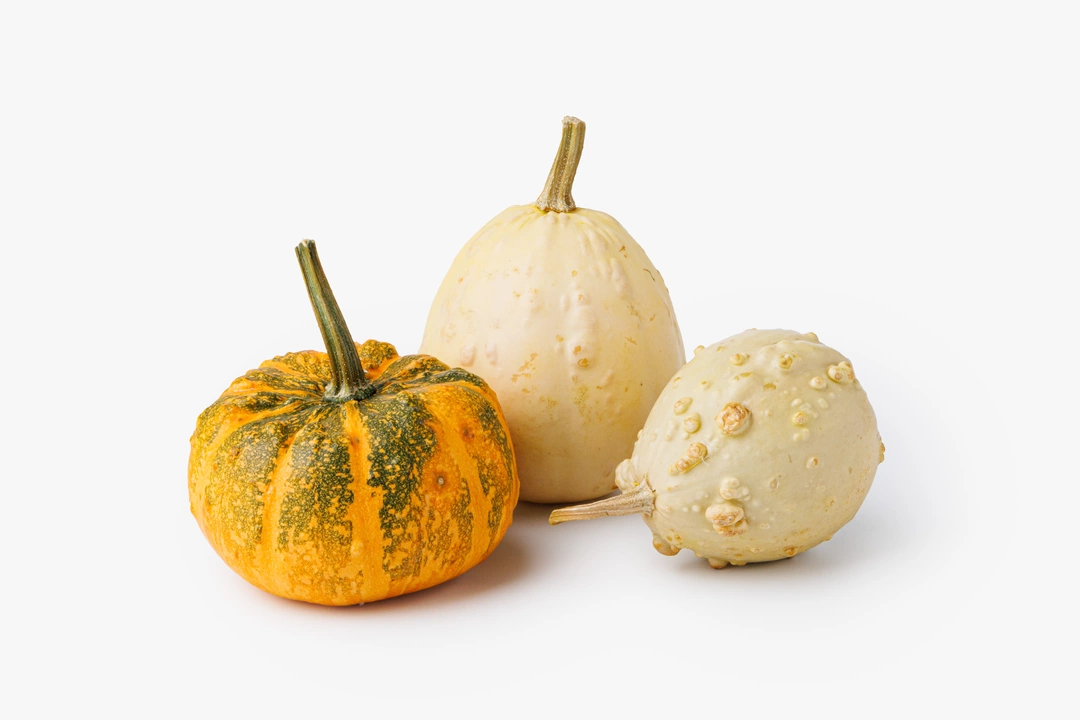 Яркие миниатюрные тыквы для создания декоративных композиций. Их используют для украшения дома, праздничного стола или витрины в сочетании с сухоцветами, свечами и листьями. Плоды можно добавить в осенний букет, положить в корзину или разложить по подоконнику, чтобы добавить уюта в интерьер. После высушивания декоративные тыквы сохраняют форму и цвет, поэтому подходят для сезонного декора на следующий год. Их также часто раскрашивают, покрывают лаком или превращают в небольшие фигурки. В упаковке три плода разной формы и окраски.