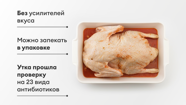 Утёнок табака — эффектное блюдо, которое украсит праздничный стол, и просто отличный повод собраться с близкими за аппетитным ужином. Мясо приправлено душистыми специями, которые идеально подчёркивают его вкус, и полностью готово к приготовлению — осталось лишь поместить в духовку. Утёнок получится нежным, сочным, с хрустящей корочкой — равнодушных не останется! Способ приготовления: удалите этикетки, сделайте проколы в верхней части упаковки и запекайте в духовке 90–120 минут при температуре 180ºC. За 10 минут до конца приготовления надрежьте пакет, чтобы утёнок подрумянился. По желанию птицу можно приготовить на гриле или на сковороде, предварительно удалив вакуумную упаковку.