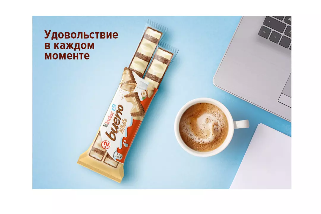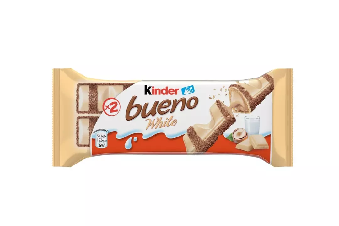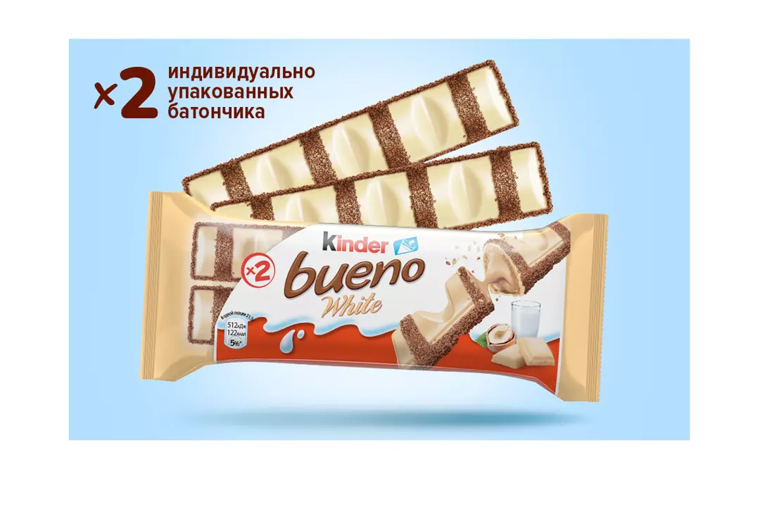 Вафли Kinder Bueno White в белом шоколаде с молочно-ореховой начинкой 39 г / Супермаркет
