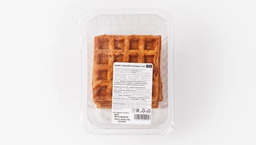 Воздушные вафли мягкие внутри и с золотистой корочкой снаружи. В составе — кокосовый напиток, вишня и щепотка корицы, при этом аромат пряности здесь явно доминирует. А искусственных ароматизаторов мы не добавляем. Сладость сдержанная, ближе к нейтральной, что делает вафли универсальными: они подойдут и для завтрака, и для перекуса без лишнего сахара. Особенно хороши в тёплом виде. Можно подать с мёдом, вареньем или фруктами. Приготовлены без молока и сливочного масла — для тех, кто выбирает растительный состав.