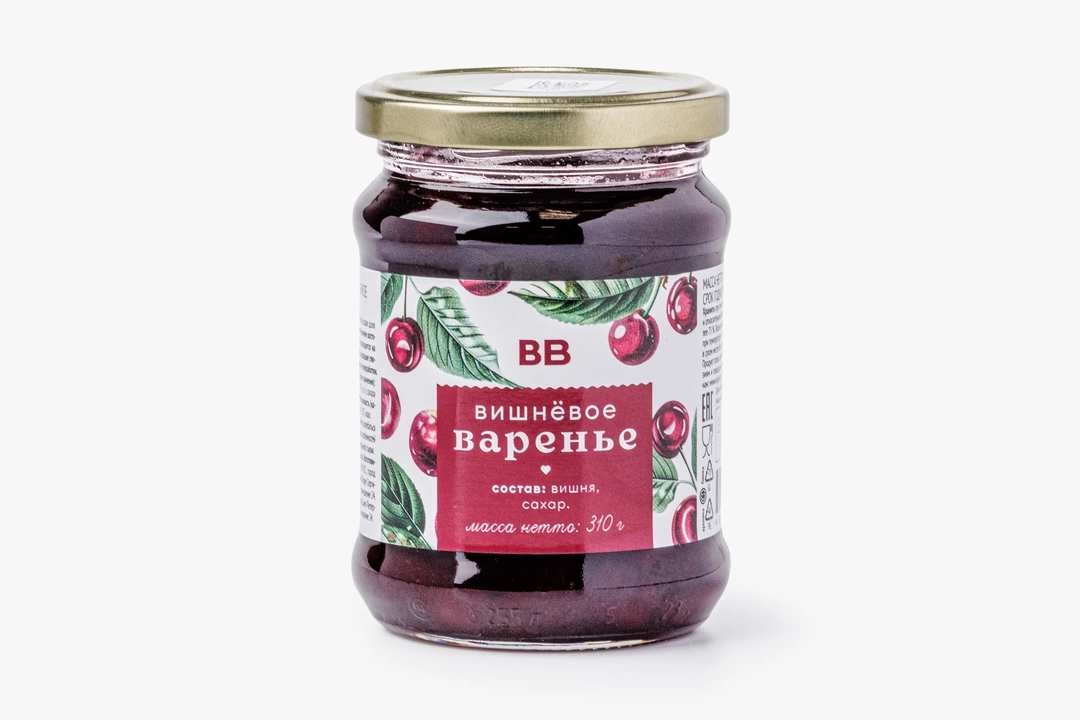 Варенье приготовлено из вишни, выращенной в собственных садах в Тульской области, и сахара. В сезон варенье готовят из свежих ягод. В холодное время года из замороженных, которые также собирают и замораживают в сезон. Гликемический индекс (ГИ)* = 62 Гликемическая нагрузка (ГН)* 100 г продукта = 42 Данные получены расчетным путем для поставщика ТД Богучарово-Маркет, ООО Продукт относится к категории с высоким гликемическим индексом и с высокой гликемической нагрузкой. * средние значения (возможны незначительные отклонения) без смены категории продукта