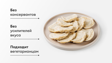 Ароматные картофельные вареники с кусочками жаренных шампиньонов. Приготовлены без ароматизаторов, консервантов и усилителей вкуса. Подходит в пост и вегетарианцам