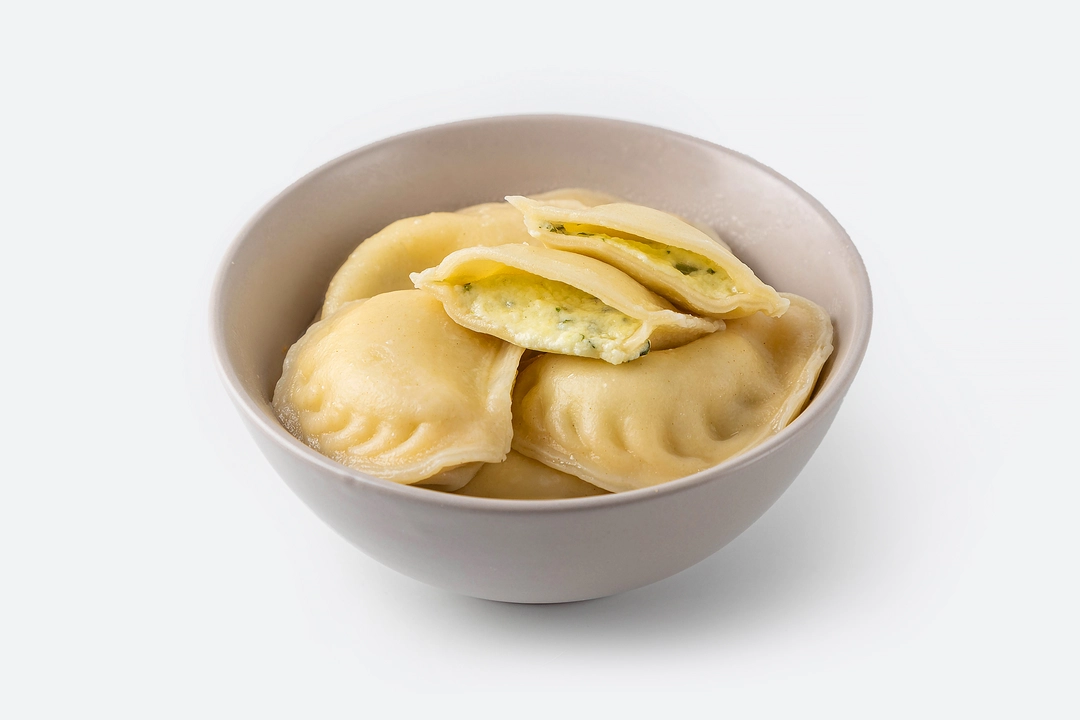Вареники с сулугуни и творогом получаются сытными и ароматными. Начинка здесь — не формальность: её действительно много. Сулугуни даёт тягучесть и насыщенный молочный вкус, творог делает текстуру нежнее, а сметана добавляет лёгкую сливочность. Зелень укропа и петрушки подчёркивает вкус сыра и придаёт свежий аромат. А тонкое тесто из пшеничной муки мягко удерживает сочную начинку, оставаясь эластичным и приятным на вкус. Вареники хороши как самостоятельное блюдо со сметаной или маслом, а также станут дополнением к салату из овощей. В составе нет искусственных ароматизаторов — используем только натуральные продукты.