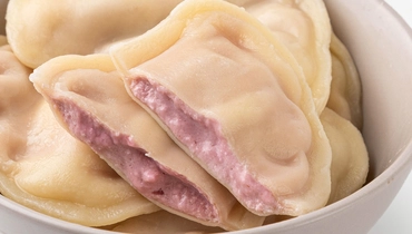 Нежные, мягкие вареники из упругого пшеничного теста с начинкой из свежего творога и сочной малины. Вкус — деликатный, сливочный, с робкой ягодной кислинкой. Заботливо слепленные, эти вареники сохраняют свою форму и начинку внутри, как при варке, так и при приготовлении на пару. Их можно подать на десерт или на завтрак, просто так или в сопровождении ложечки густой сметаны.