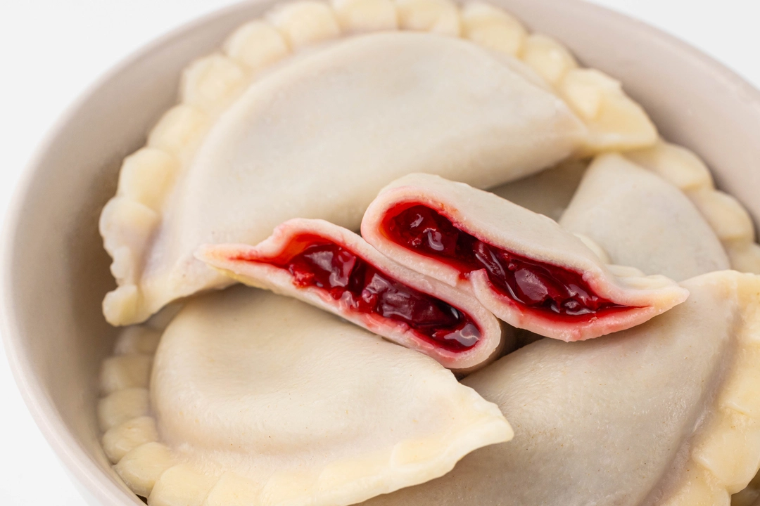 Классические вареники с начинкой из сочной вишни. Обладают приятным кисло-сладким вкусом. Одинаково хорошо подходят как для обеда, так и на десерт. Большой порции хватит, чтобы накормить всю семью!