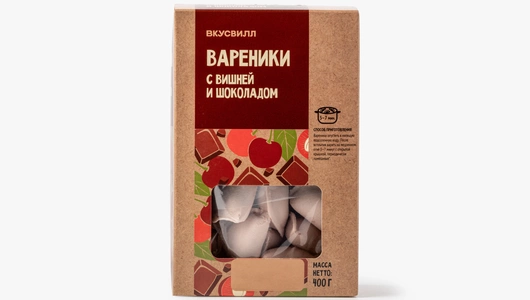 Классические вишнёвые вареники с шоколадным акцентом разнообразят быстрые завтраки и ужины. Нежное тесто с добавлением свёклы приобретает едва заметный розоватый оттенок и получается достаточно прочным и эластичным. Сочная ягодная начинка дополнена сладостью молочного шоколада. Готовые вареники можно подать со сметаной, йогуртом или сахарной пудрой. Продукт не содержит искусственные ароматизаторы.