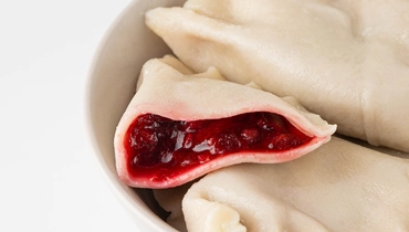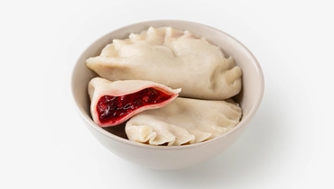 Царь-вареники — не иначе: настолько они впечатляют своими размерами. И главное, что в них помещается много начинки из цельной вишни. А чтобы вареник был максимально наполненным, к цельной ягоде добавляют немного измельчённой. Аппетитные, насыщенно-кисло-сладкие, они отлично подойдут для обеда и сытного завтрака. Возможно наличие вишнёвых косточек, будьте аккуратны.