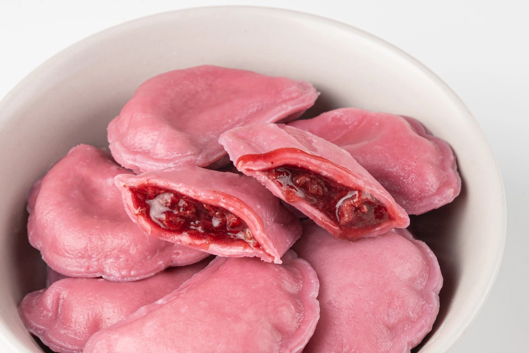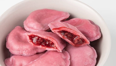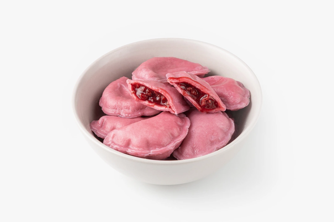 Вареники с вишнёвой начинкой и традиционными зимними пряностями. Тесто с добавлением натурального красителя приобретает нежный розоватый оттенок. В начинку из цельных ягод вишни мы положили щепотку корицы и мускатного ореха, чтобы придать лёгкую пикантность и тёплые ноты. Такое необычное сочетание оценят любители классических зимних вкусов. Подавайте их со сметаной, сахарной пудрой или ванильным соусом. Продукт не содержит искусственные ароматизаторы.