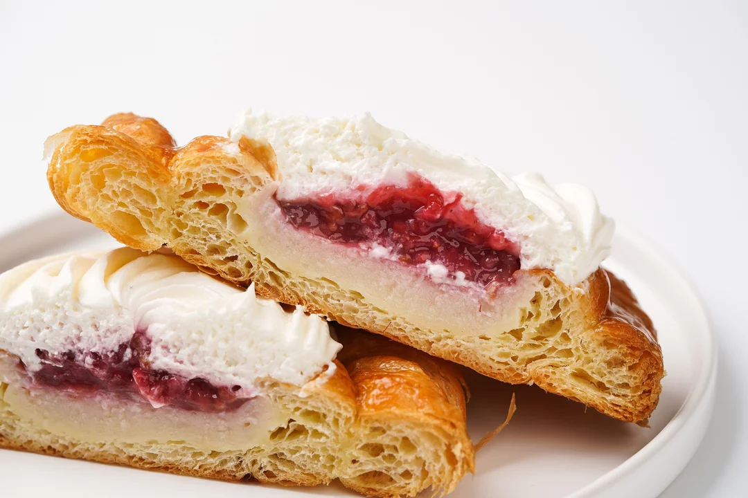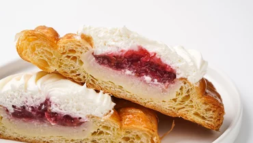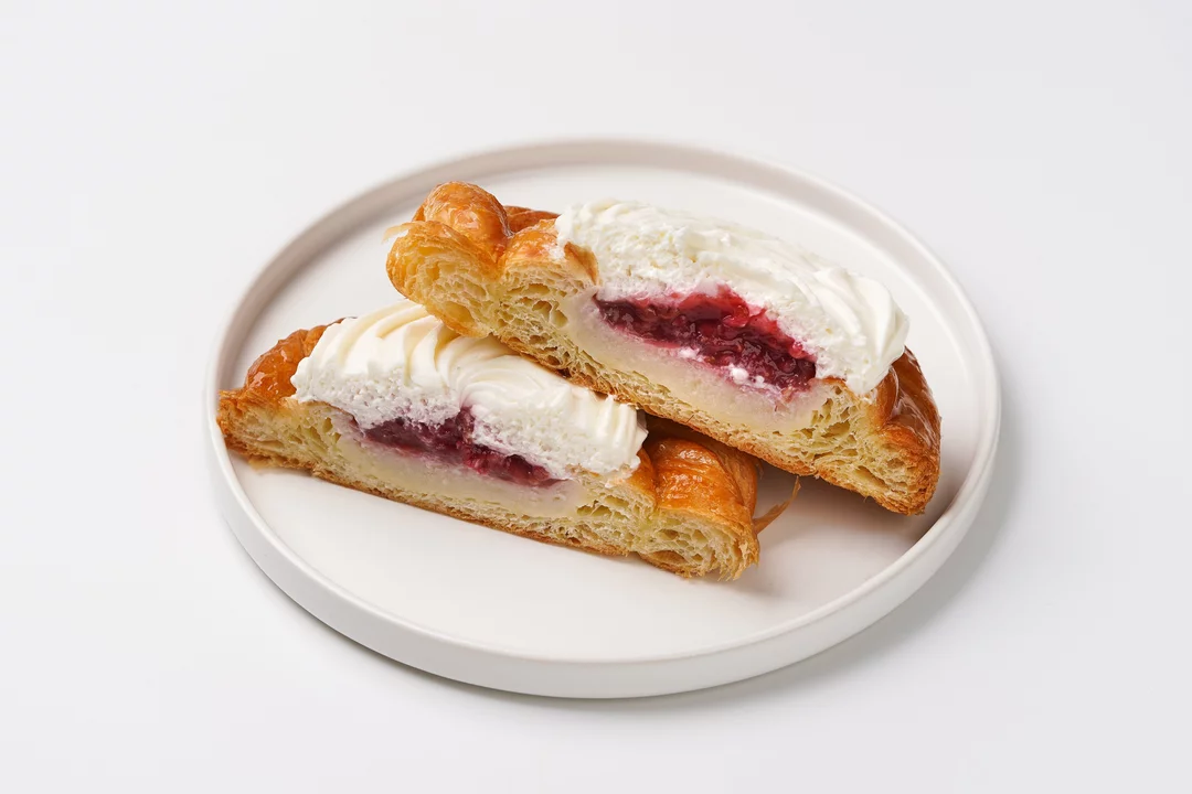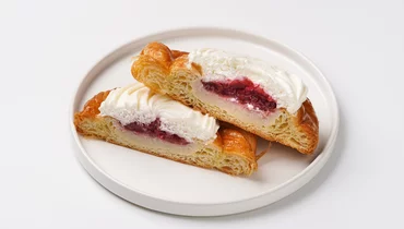 Воздушное тесто и нежный крем на основе творожного сыра создают мягкий, сбалансированный вкус с лёгкой сливочной сладостью. Внутри — прослойка малинового конфи, придающая десерту яркую кислинку и свежий акцент. Слоёное тесто сочетается с кремовой начинкой, а малина добавляет выразительность каждому кусочку. Такой вензель подойдёт к кофе или чаю, особенно если хочется чего-то сладкого, но не приторного.