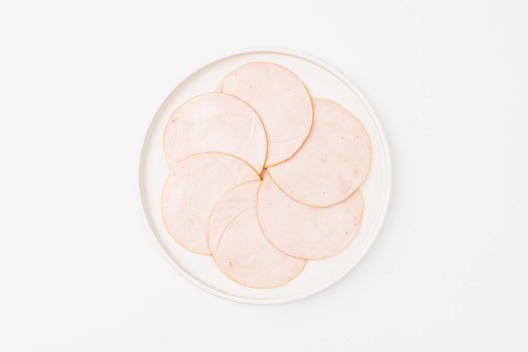 Ветчина из куриной грудки с чистым составом — без крахмала, ароматизаторов и усилителей вкуса. Приготовлена из качественного мяса и натуральных специй: чеснока, розмарина, чёрного перца, имбиря и кориандра. Их экстракты подчёркивают вкус мяса и добавляют лёгкий пикантный аромат. Благодаря тонкой нарезке удобно использовать для бутербродов, закусок и салатов.