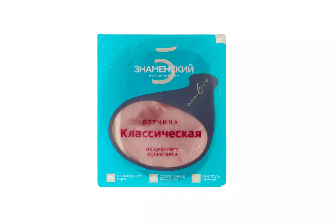 Ветчина Знаменский ветчинный дом Классическая из цельного куска мяса нарезка 250 г / Супермаркет