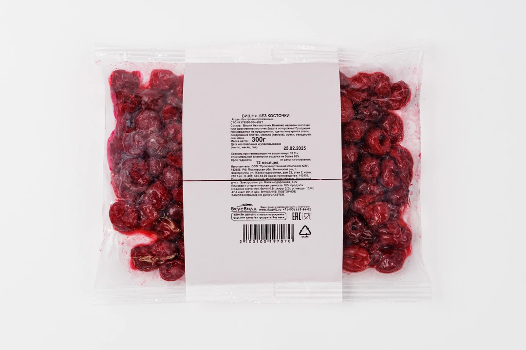 Отборные кисло-сладкие ягоды без косточек, сохранившие максимум вкуса благодаря высокотехнологичной шоковой заморозке. Такая вишня прекрасно подойдёт для приготовления сладких пирогов, смузи и варенья, а любители полезных десертов могут полакомиться ягодой в сочетании со взбитыми сливками и тёмным шоколадом. Возможно наличие косточек вишни. Будьте осторожны!
