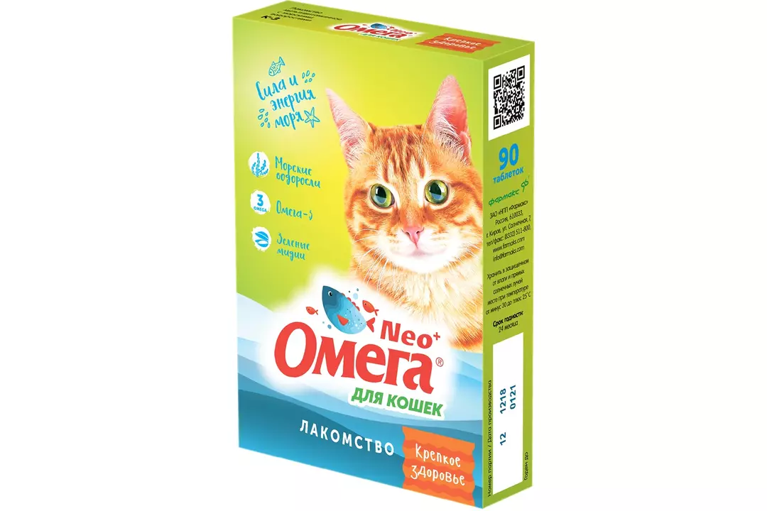 Витамины ОМЕГА NEO+ Крепкое здоровье для кошек с морскими водорослями 90 таб.