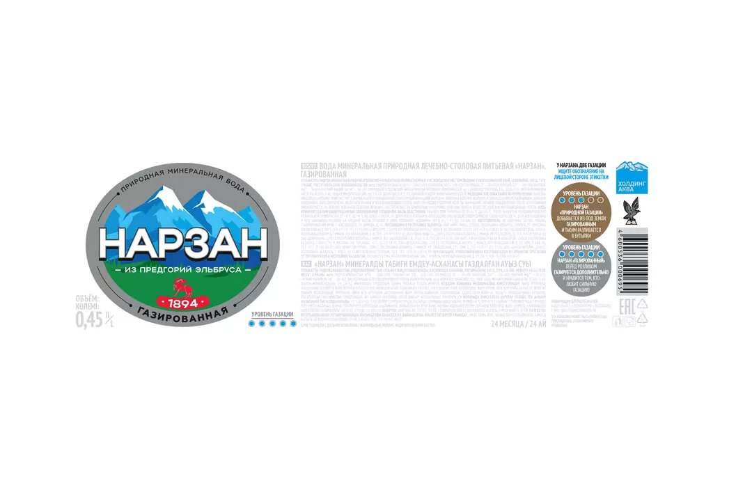 «НАРЗАН» - ОДИН ИЗ СТАРЕЙШИХ БРЕНДОВ МИНЕРАЛЬНОЙ ВОДЫ В РОССИИ С БОЛЕЕ ЧЕМ 125-ЛЕТНЕЙ ИСТОРИЕЙ Путь воды занимает 6 лет: • Талые воды с ледников Эльбруса просачиваются сквозь толщи горных пород • Под воздействием вулкана Эльбрус обогащаются полезными минералами Кисловодское месторождение: • Одно из старейших в регионе – первое упоминание в 1793 году • Находится на высоте более 800 м над уровнем моря Богатый природный состав воды: • Лечебно-столовая, сульфатно-гидрокарбонатная натриево-магниево-кальциевая вода • Среднеминерализованная • Минерализация 2-3,5 г/л • Содержит более 20 полезных минералов • Мягкий приятный вкус. pH 5,9. Количество штук в транспортной упаковке 12. Страна производитель-Россия.