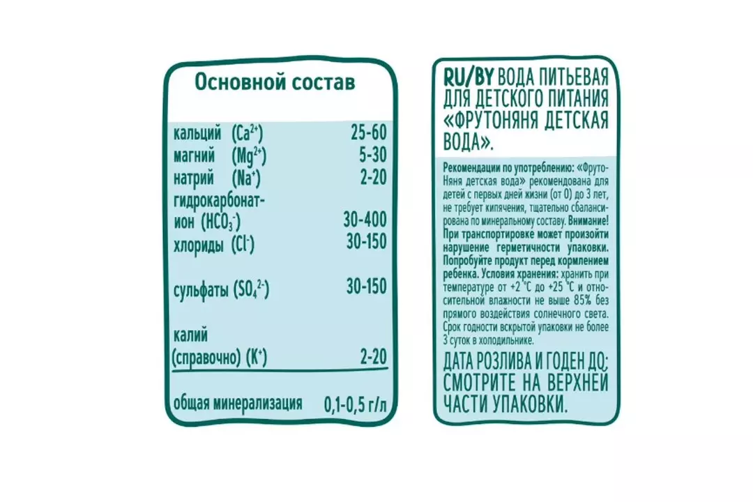 Детская вода «ФрутоНяня» рекомендована для детей с первых дней жизни, не требует кипячения, тщательно сбалансирована по минеральному составу. Страна-производитель Россия