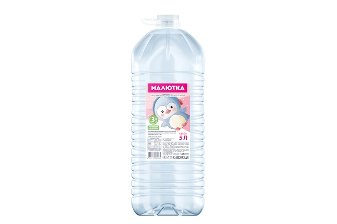 «МАЛЮТКА» — природная питьевая вода для детей старше 3 лет. Добывается из экологически чистого источника Калужской области. Оптимальный баланс минералов поддерживает здоровое развитие ребёнка. Мягкая и безопасная, не требует кипячения. Страна производитель-Россия