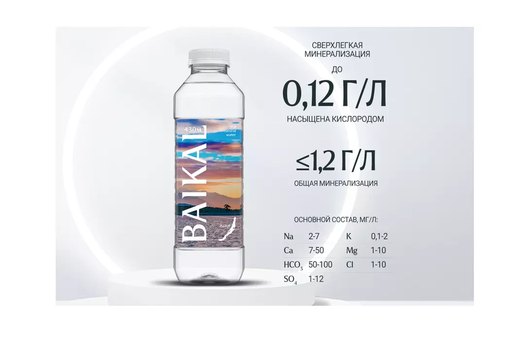BAIKAL430 – реликтовая вода из озера Байкал с глубины 430 метров, сохранившаяся в первозданном виде. Она воплощает силу, неподвластную времени, и непоколебимое спокойствие великого озера. Растворенный в Байкале кислород придает воде свежесть вкуса, а сверхлегкая минерализация восполняет водно-солевой баланс. На сегодняшний день система забора воды BAIKALSEA Company — единственная на Байкале, выполненная с соблюдением всех стандартов и соответствующая всем современным требованиям, обеспечивающая неизменность уникального качества глубинной байкальской воды. BAIKAL430 представлена в различных форматах упаковки: от стильных бутылок, которые удобно брать с собой, до больших форматов, подходящих для домашнего использования и офиса. Страна производитель-Россия