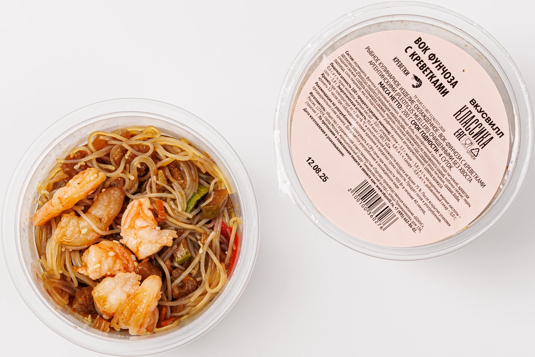 Традиционное азиатское блюдо со стеклянной лапшой, креветками и овощами в соевом соусе. Состав проверен: нет усилителей вкуса, консервантов и антибиотиков