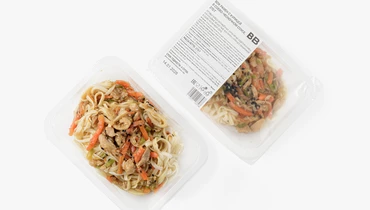 Пшеничная лапша удон с сочным куриным мясом в ароматном соусе. Мы приготовили соево-чесночную заправку, чтобы придать блюду насыщенный вкус, и добавили морковь, лук и кабачки для свежего акцента. Сверху посыпали семенами белого и чёрного кунжута для контраста. Перед подачей блюдо нужно разогреть, чтобы лапша пропиталась специями, а аромат стал ещё более аппетитным. Это быстрый и вкусный вариант готового обеда или ужина для любителей азиатской кухни.