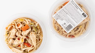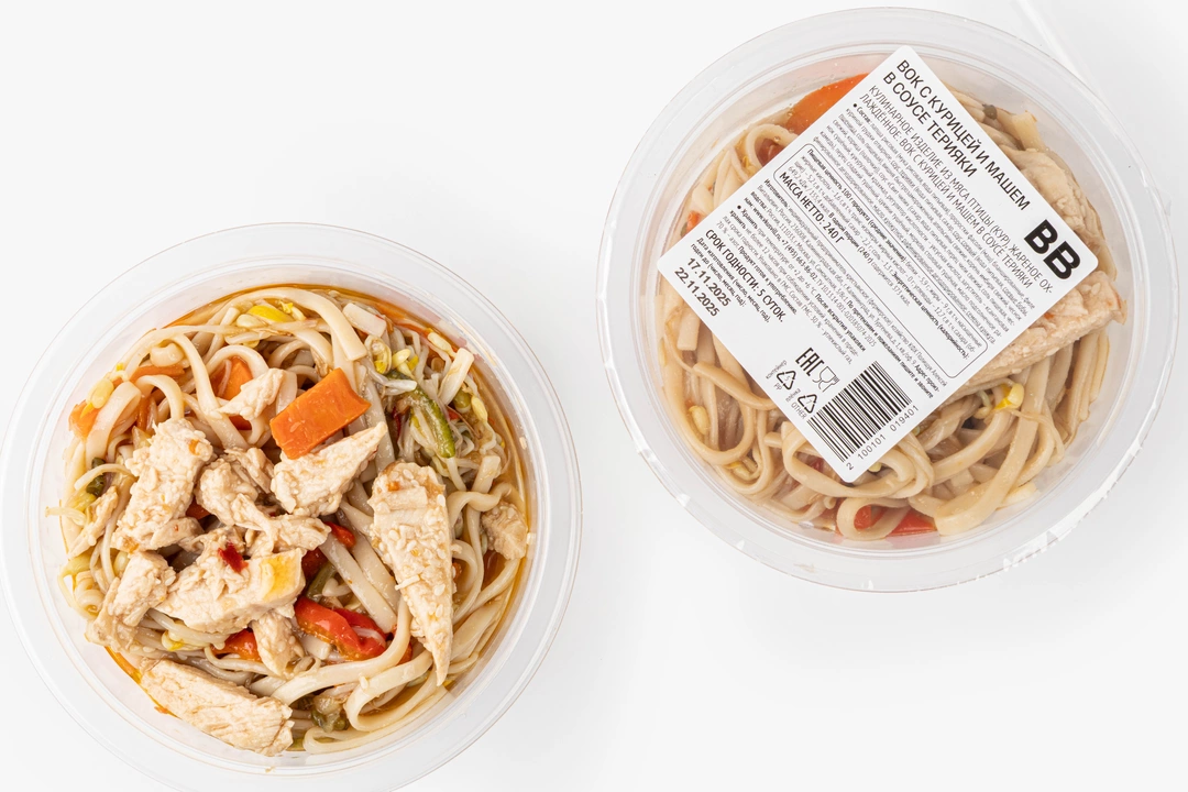 Блюдо азиатской кухни из рисовой лапши с соусом терияки и кусочками куриной грудки. Морковь, сладкий перец и цукини придают ему сочность, остро-сладкий соус делает вкус пикантным, а кунжут и проростки фасоли приятно хрустят. Во время бланширования маш слегка темнеет — в нём образуется ещё больше антиоксидантов, придающих ему цвет.
