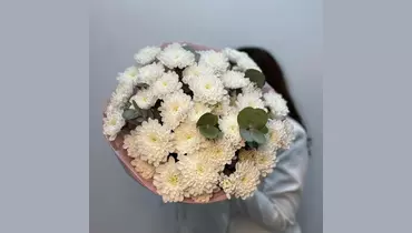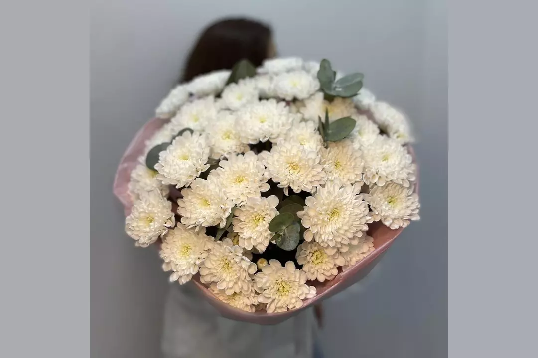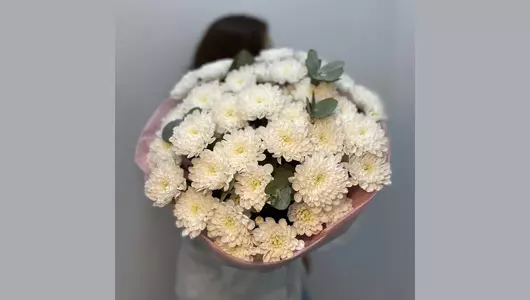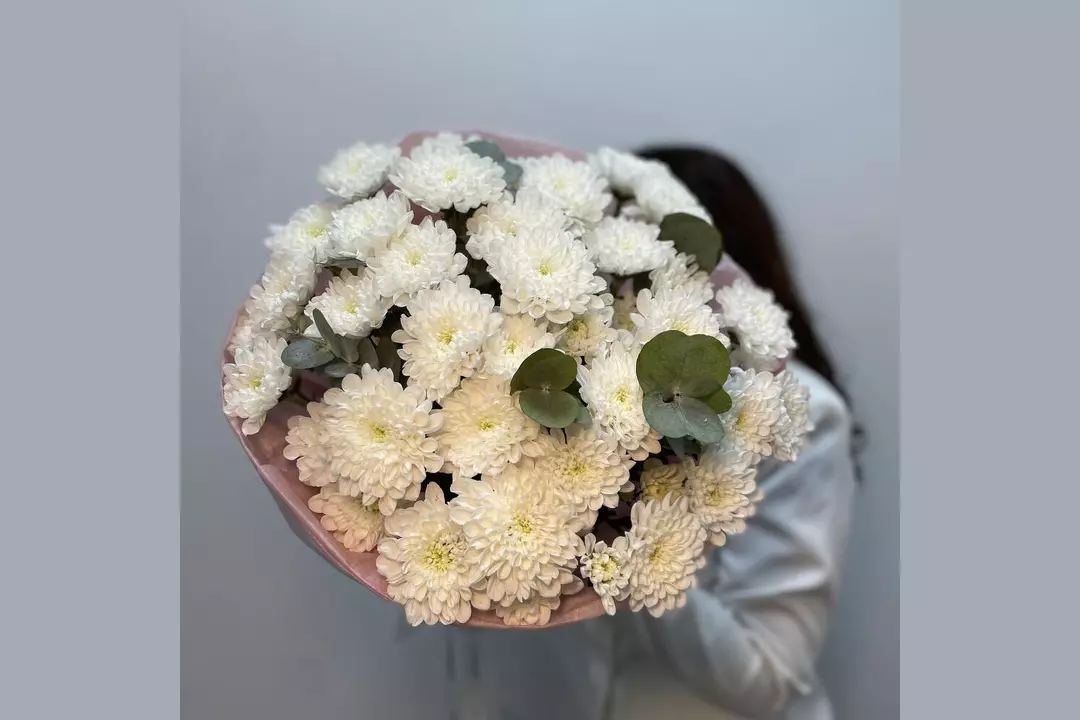 Воздушный букет из белоснежной хризантемы с эвкалиптом "Вдохновение" FMART by flowwow