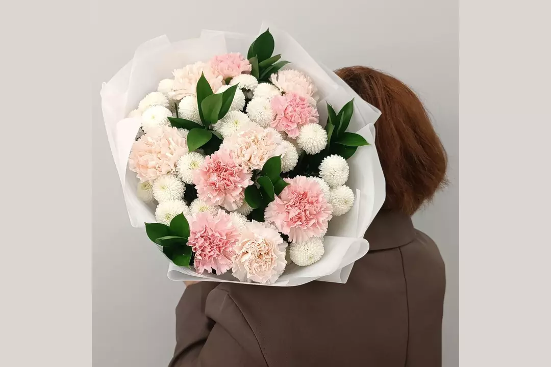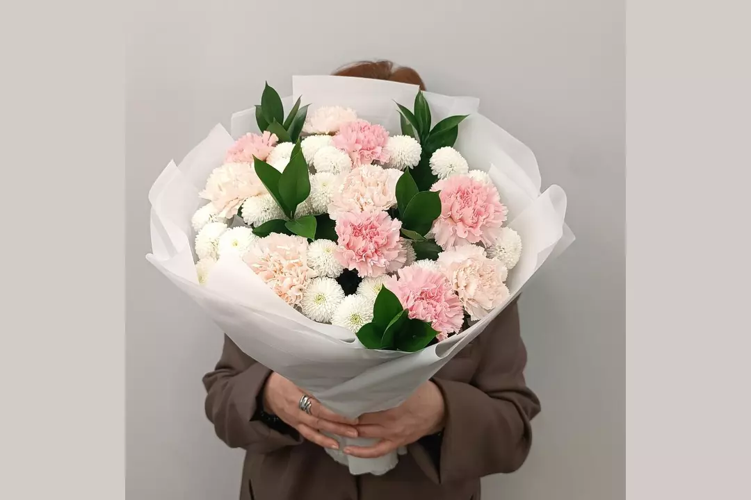 Воздушный букет из кустовой хризантемы и гвоздики FMART by flowwow
