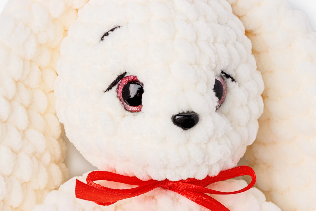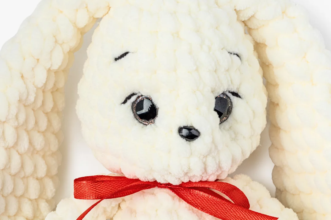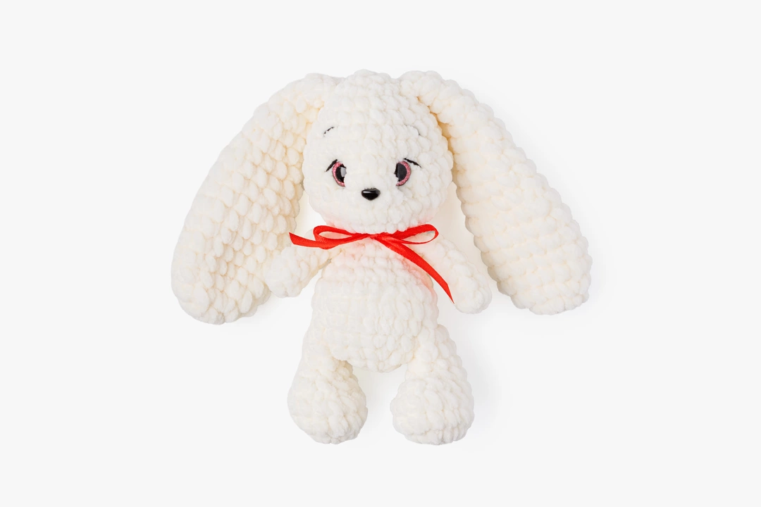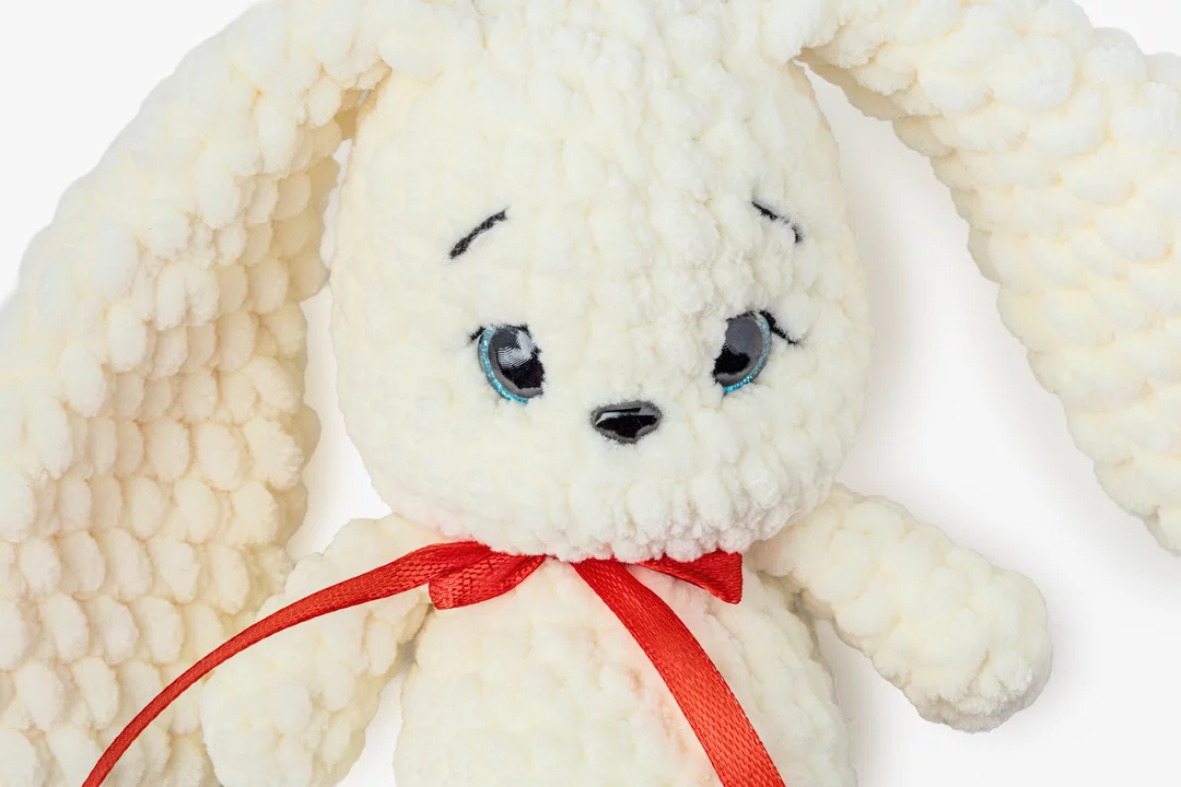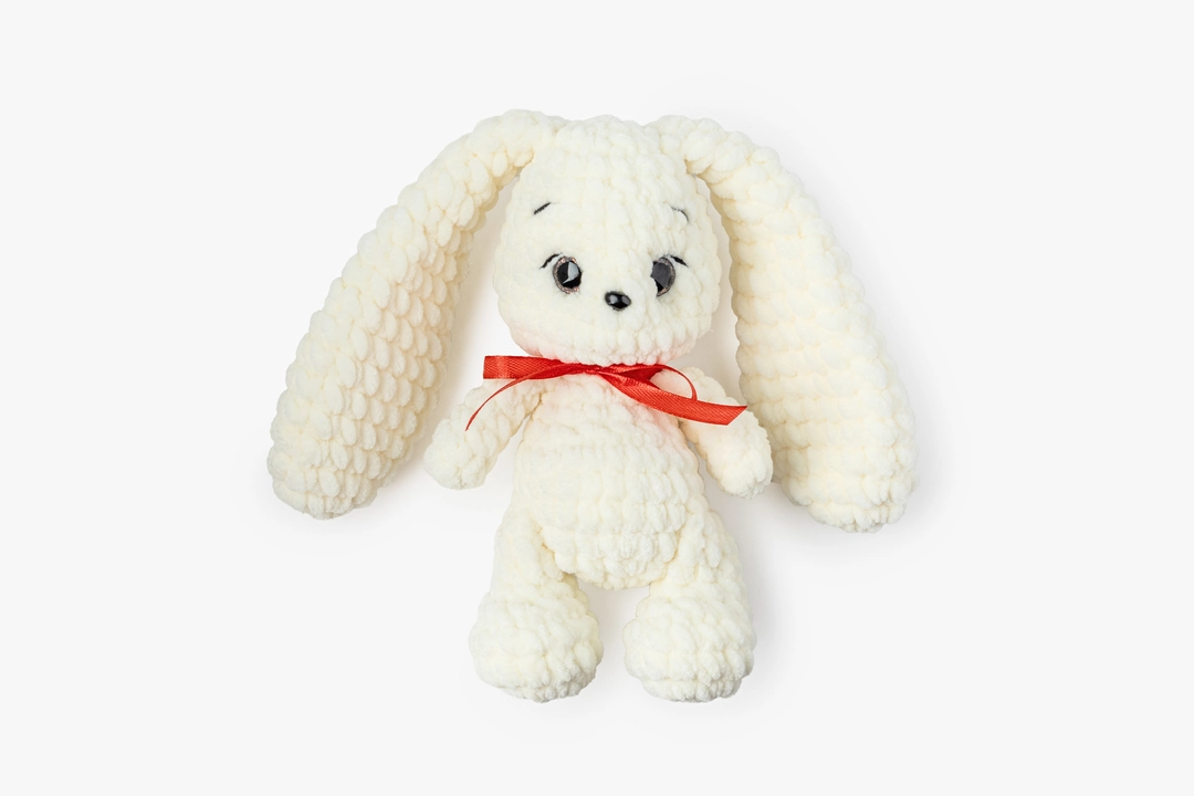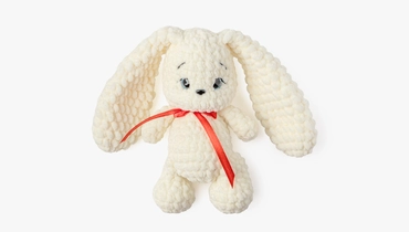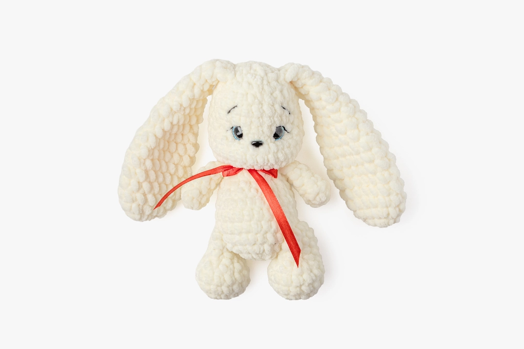 Милый вязаный зайка станет новым другом для ребёнка или ярким акцентом на книжной полке. Его высота всего 18 см. Мягкие нити приятны на ощупь, а плотный наполнитель позволяет игрушке сохранять форму. Его удобно брать с собой в кроватку или на прогулку благодаря лёгкому весу и небольшим размерам. Все материалы безопасны для детей и не вызывают раздражения. Изделие создано в мастерской авторских работ «Васины игрушки», где трудятся опытные мастера со всей страны, в том числе из социально уязвимых категорий граждан.