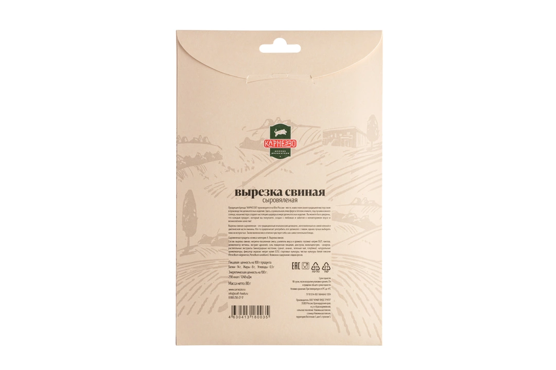 Вырезка свиная Карнеззо сыровяленая нарезка 80 г / Супермаркет