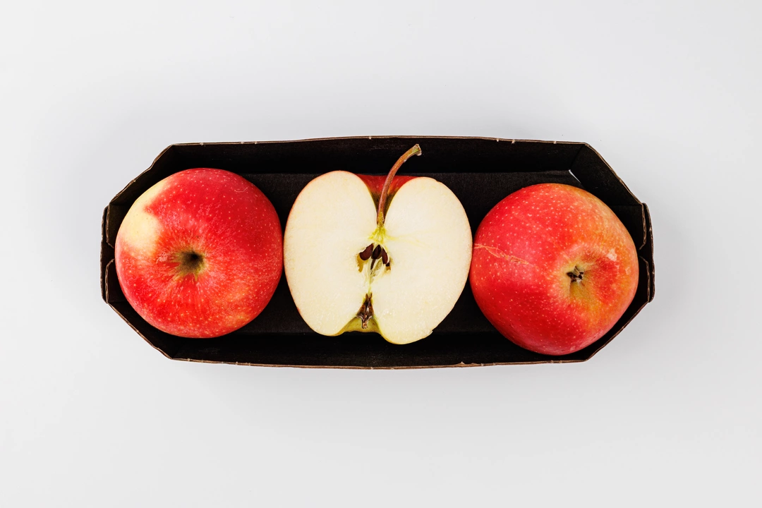 Молодые яблоки с тонкой красно-зелёной кожицей — их мякоть хрустящая, сочная, с яркой кислинкой и лёгкой сладостью. Сорт отличается свежим ароматом и нежной текстурой, характерной для раннего урожая. Хороши для летних салатов, освежающих смузи или просто как лёгкий перекус — особенно слегка охлаждёнными.
