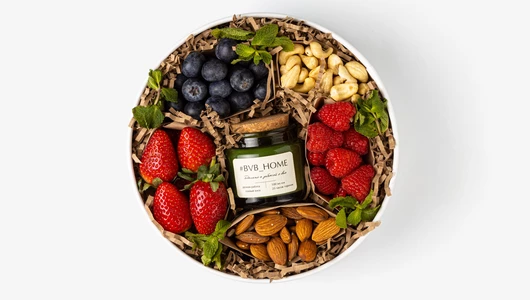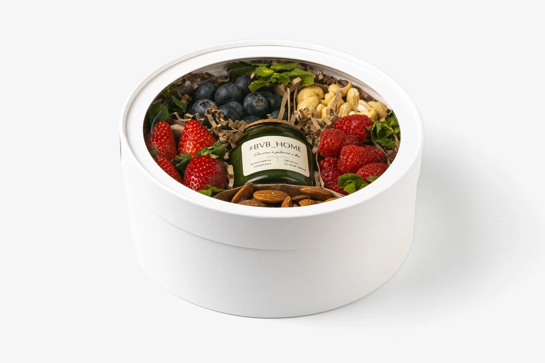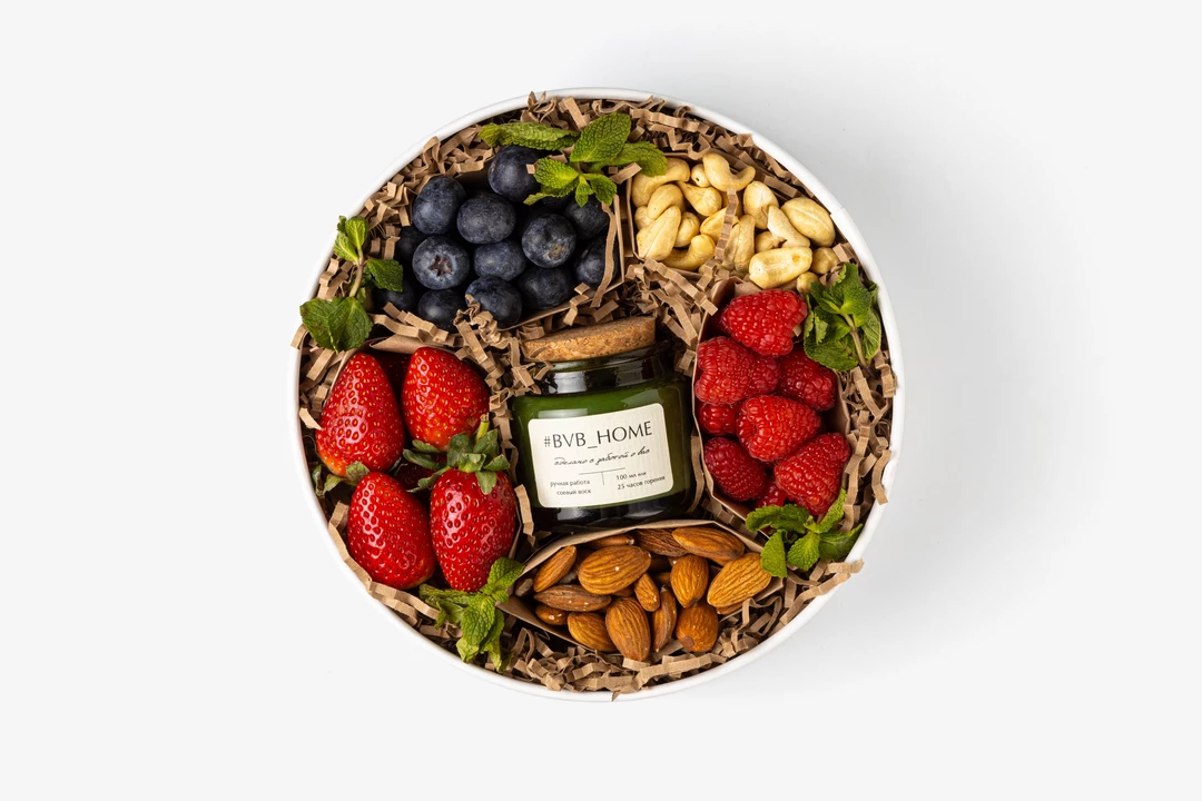 Ягодно-ореховый набор Солнечная энергия — заряд свежести и тепла в одной коробке. Каждую ягоду мы отбираем вручную, а дополняем набор хрустящими орехами и ароматической свечой для создания уюта. Фруткорт — это наша собственная кухня, где мы сами готовим свежие нарезки и напитки в течение дня. Больше информации и другие позиции можно найти в каталоге по слову «фруткорт».