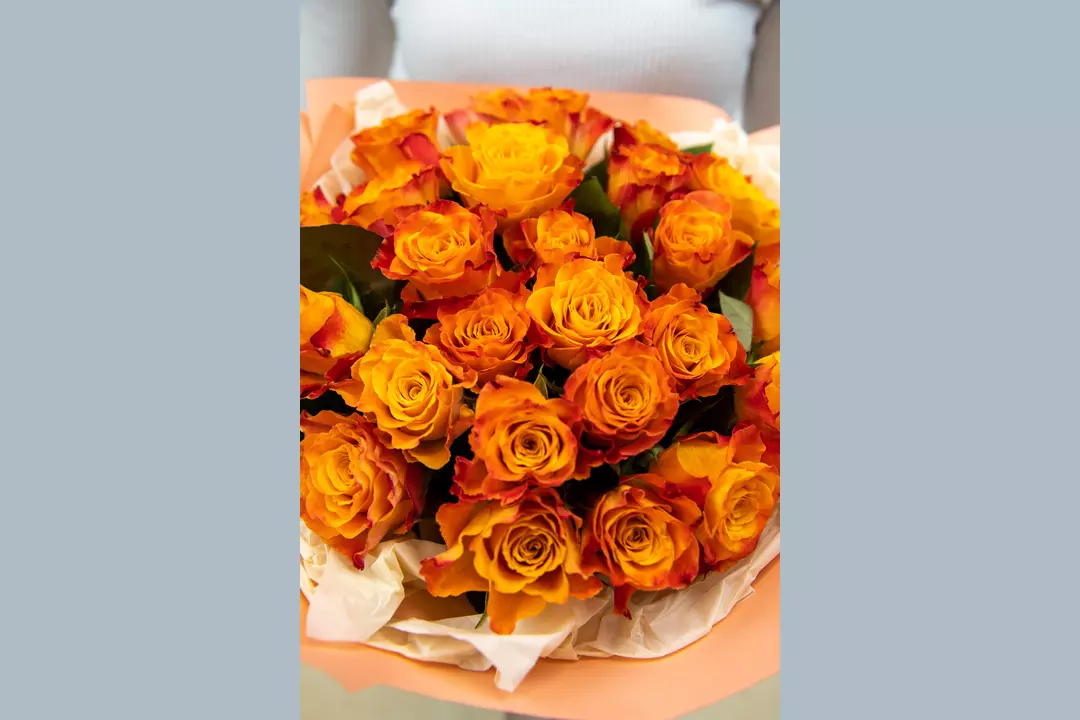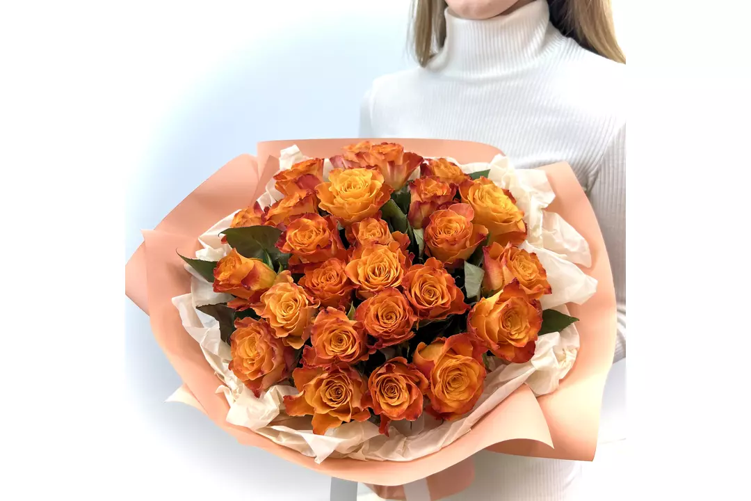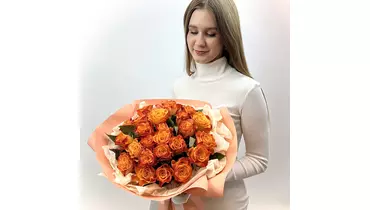 Яркий букет из 25 шт оранжевых роз. Классика никогда не надоест! Этот букет является прекрасным выбором для тех, кто ценит элегантность и красоту классических композиций. Состав Атласная лента Роза 40 см - 25 шт. Дизайнерская упаковка Размер Ширина - 40 см Высота - 40 см Созданный профессиональными флористами, этот букет подчеркивает изысканность оранжевых роз. Каждый цветок внимательно подобран с учетом качества и свежести, чтобы обеспечить долговременную красоту и удовольствие от цветения. Оранжевый цвет роз символизирует энергию, страсть и радость, добавляя в ваш подарок яркости и динамичности. Наш дизайнерская упаковка гармонично дополняет классическую красоту роз и придает изысканность вашему подарку. Она создана с любовью к деталям, обеспечивая удобство при транспортировке и привлекательный внешний вид. Благодаря уникальному дизайну упаковки, букет из 25 оранжевых роз выглядит неотразимо даже до его распаковки. Этот букет станет идеальным презентом для особых моментов в жизни: юбилеев, достижений, Дня Рождения и многих других торжественных событий. Классическая красота роз подарит незабываемые впечатления и выразит наилучшие пожелания, позволяя передать свою любовь, благодарность или восхищение. Закажите наш букет из 25 оранжевых роз в дизайнерской упаковке прямо сейчас и создайте волшебную атмосферу для важных людей в вашей жизни. Обратите внимание, что на фото цвет может незначительно отличаться от реального цвета из-за места съемки, освещения или фотоаппарата. Также о размерах букета указано в описании (ширина и высота). Для понимания размера композиции представлены фото цветов с человеком. К букету мы обязательно добавляем: - Инструкцию по уходу за цветами - Подкормку (кризал) - Транспортировочную упаковку для бережной доставки