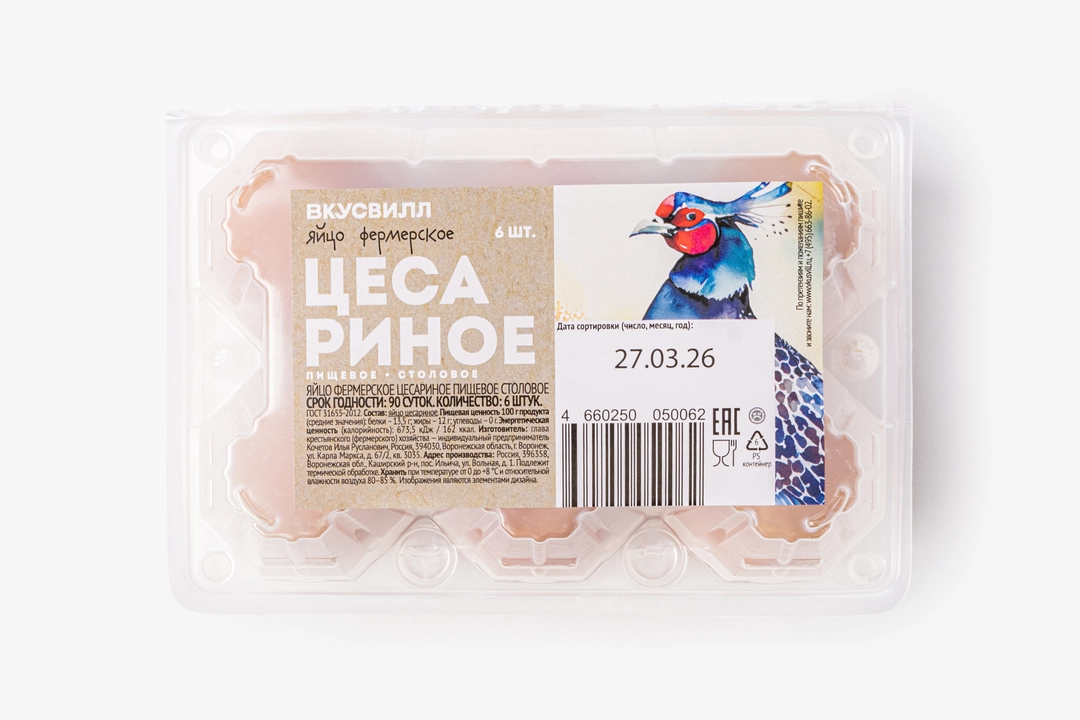 Яйцо фермерское цесариное пищевое столовое, 6шт