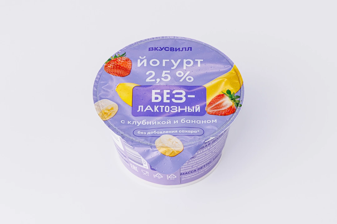 Йогурт безлактозный с клубникой и бананом без доб. сахара 2,5%