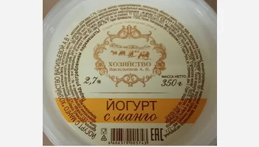 Йогурт Хозяйство Васильевой А.В. манго 2,7% 350 г
