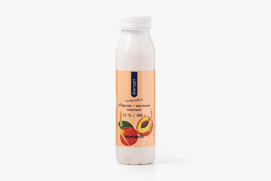 Йогурт питьевой "Персик-овсяные хлопья", 1,7%