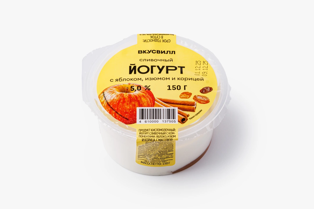 Йогурт сливочный с яблоком, изюмом и корицей 5%