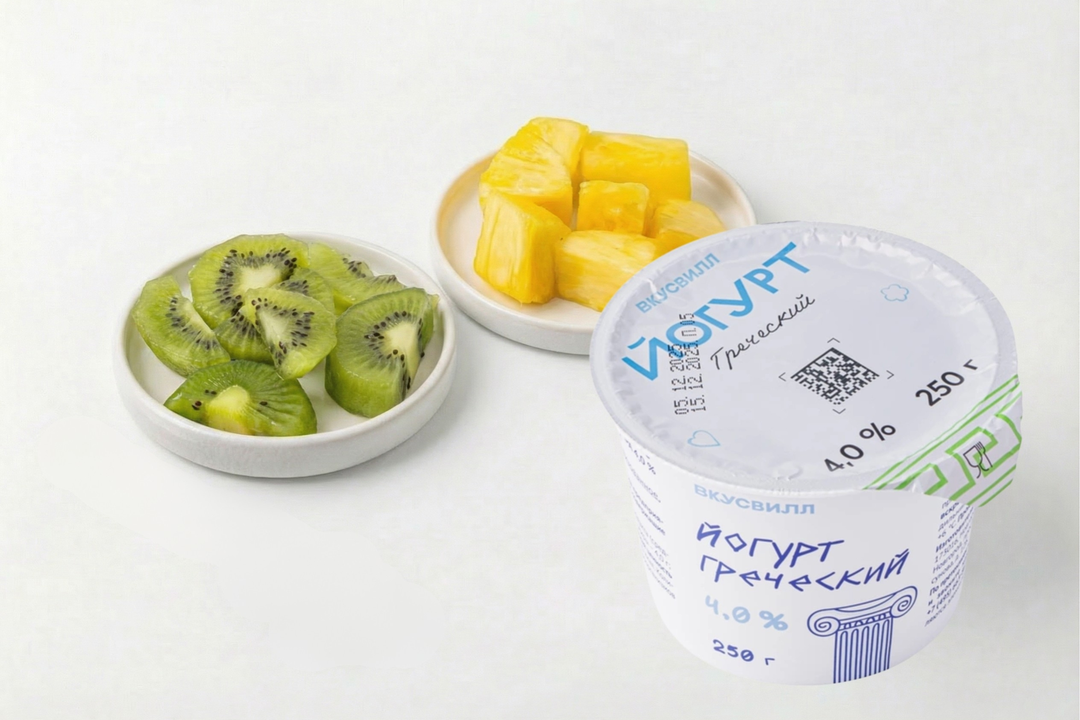 Йогурт греческий 4% со сладким медовым ананасом и спелым киви. Фруткорт — это наша собственная кухня, где мы сами готовим свежие нарезки и напитки в течение дня. Больше информации и другие позиции можно найти в каталоге по слову «фруткорт». Состав комбо: Йогурт греческий 4% — 250 г Фруктовый топпинг (ананас медовый) — 70 г Фруктовый топпинг (киви) — 60 г