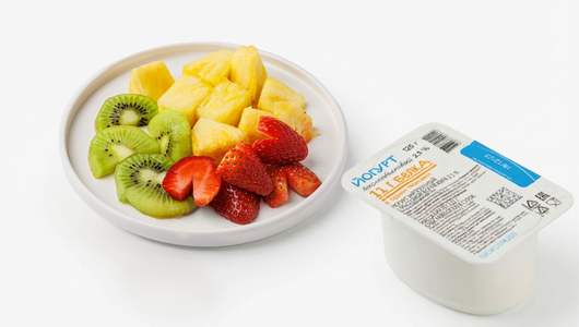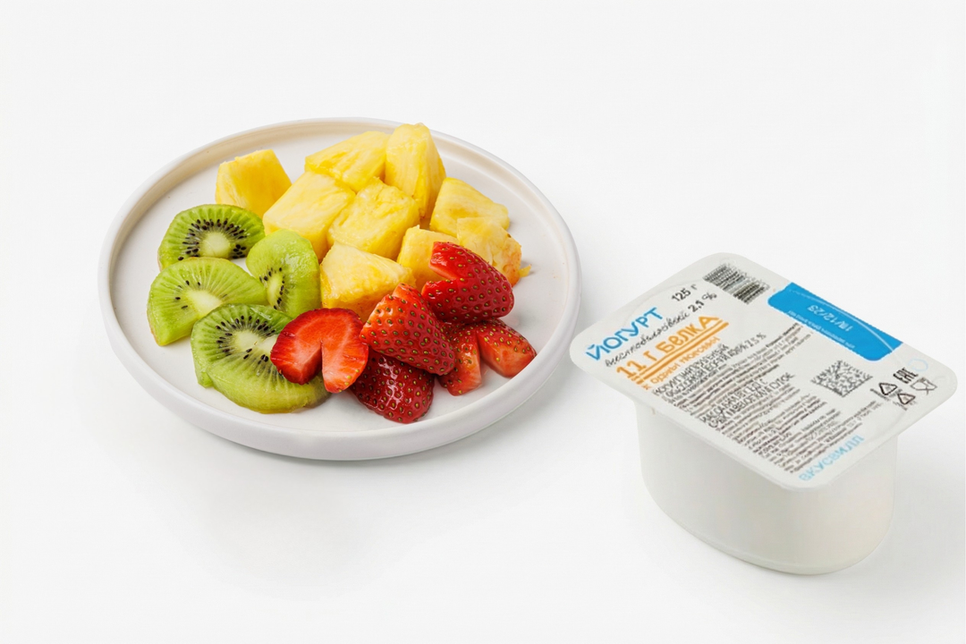 Йогурт со свежими фруктами:ананас, киви, клубника